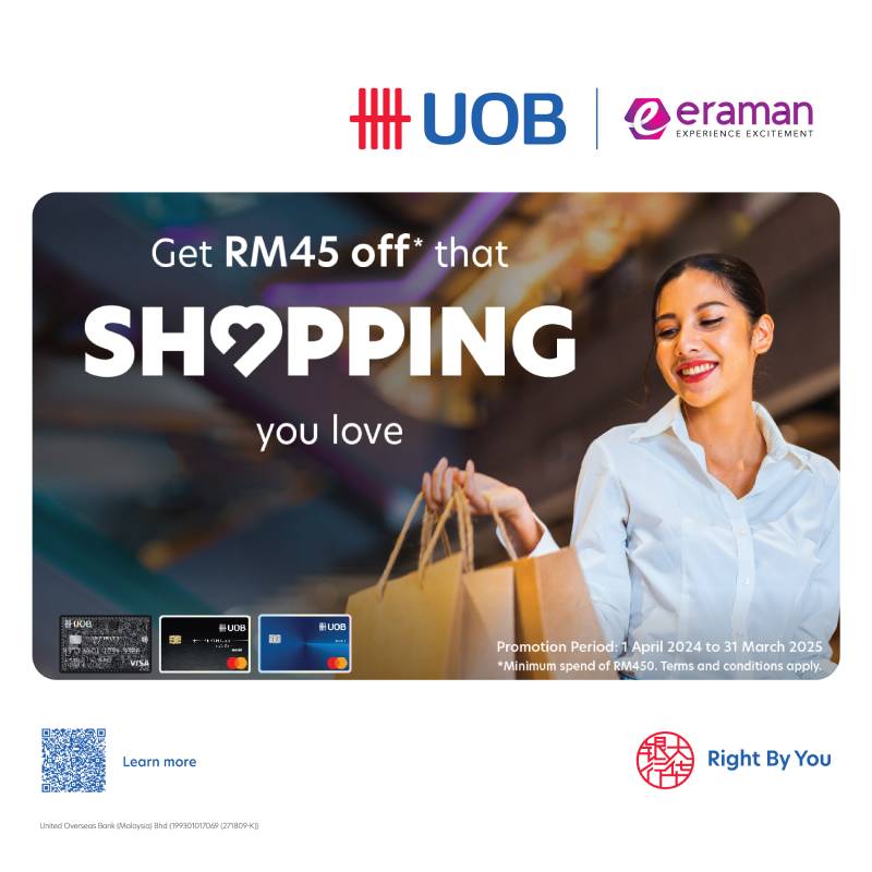 ?️Spend a minimum of RM450 to enjoy RM45 off with your UOB bank card from 1 June until 30 November at all Eraman retail stores nation wide.