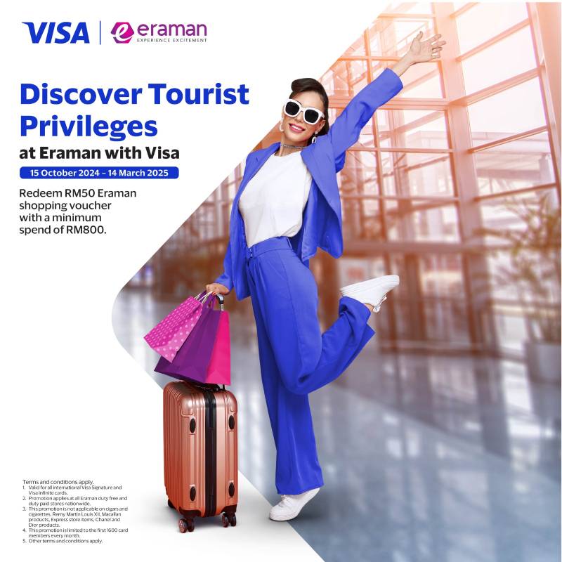 ? Discover Exclusive Tourist Privileges at Eraman with Visa! ?️✨ Enjoy fantastic deals when you shop with your Visa card at Eraman, valid from 15 October 2024 until 14 March 2025. Don't miss out on these special perks??
