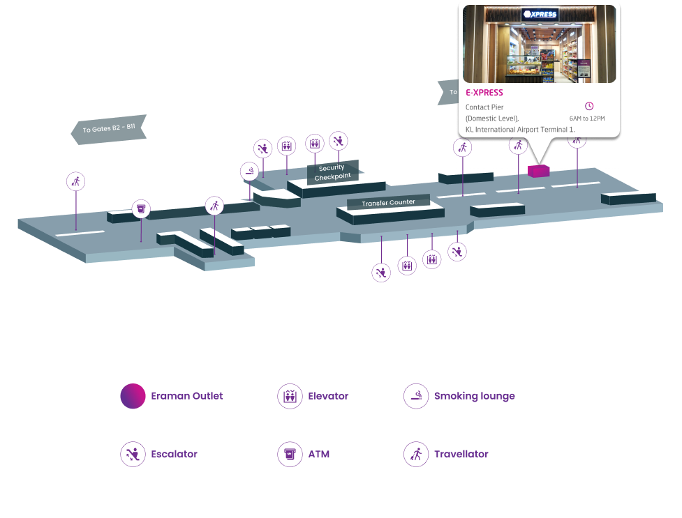 <ul><li>E-XPRESS is your one-stop convenience store for all your travel needs. Whether you're craving a quick snack, a refreshing drink, or need to pick up last-minute essentials, E-XPRESS has you covered. From indulgent chocolates and freshly baked bread to local treats and sandwiches, there's something for every traveler. Don't forget to grab a hot cup of coffee to keep you energized on your journey. E-XPRESS ensures you're always prepared, whether you're in a hurry or have time to browse.</li></ul>