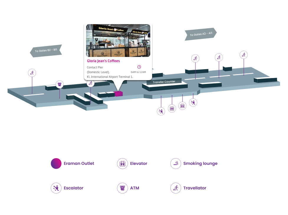 Gloria Jean’s Coffees is an iconic Australian coffee brand known for its expertly crafted blends and welcoming café atmosphere. The brand delights travelers with a diverse menu of rich, aromatic coffees, specialty beverages, and freshly baked pastries. Whether it's a classic espresso, a creamy latte, or a refreshing iced drink, Gloria Jean’s Coffees offers something to suit every palate, making it a go-to destination for coffee lovers on the move.