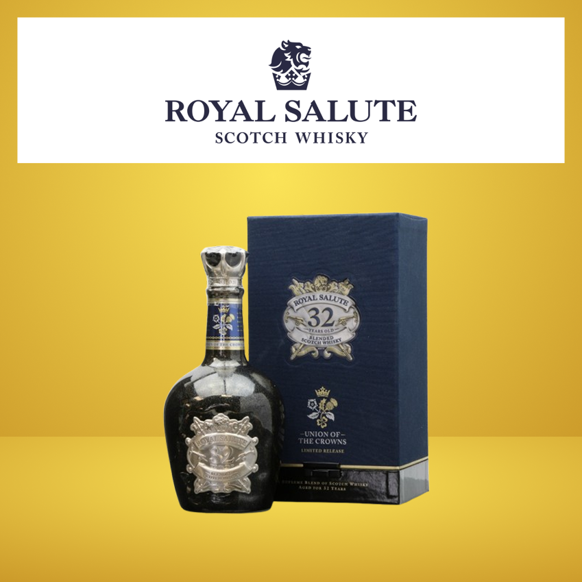 Royal Salute 32 Years Old celebrates the Union of the crown, which saw the unification of Ireland, Scotland and England under the British Monarchy. An exquisite blend of hand- selected single malt and grain whiskies aged for a minimum of 32 years, it is presented in a magnificent porcelainflagon with a unique glaze. Notes of smooth orange balanced with soft ripe pear with a touch of moist ginger cake. A never ending finish.
