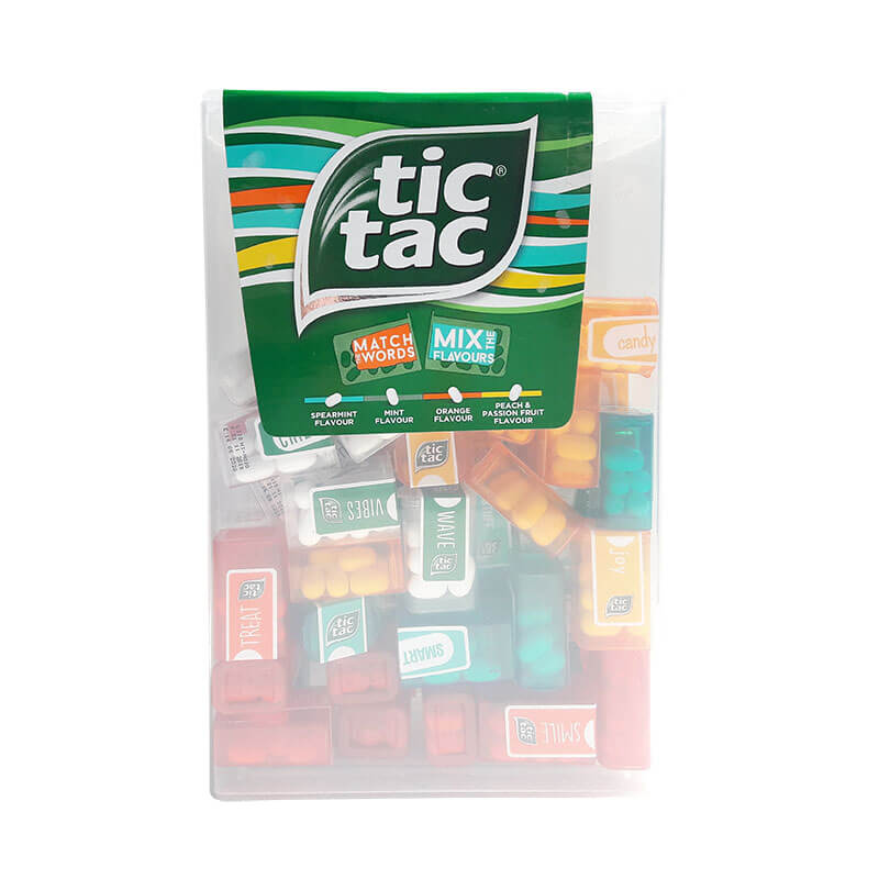 New Tic Tac miniatures! Enjoy the new assortment of 4 refreshing flavors - Mint, Spearmint, Orange and Cherry - in an original maxi box containing 60 nice mini boxes perfect to share or give as a gift