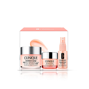 Travel Exclusive: A trio of moisture must-haves. Enjoy rapid and continuous refreshment with the Moisture Surge™ 100-Hour Auto Replenishing Hydrator. All About Eyes™ diminishes the appearance of puffs and undereye circles. For an instant boost of hydration anytime, anywhere, there’s Moisture Surge™ Face Spray Thirsty Skin Relief. Perfect for use in-flight.Allergy Tested. 100% Fragrance Free.