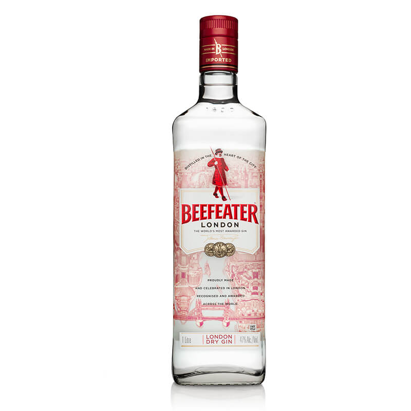 Beefeater was given the name by James Burrough to indicate its style and its true London links. Beefeater is never less than 40% alcohol as they believe that reducing the alcoholic strength adversely affects the taste. Wheat and barley are the grains used for the base spirit, to give a clean taste. The botanicals used to flavour the gin include; juniper berries from Italy, coriander seeds from Romania, Russia and Bulgaria, orange and lemon zest from Spain and angelica root from Flanders.